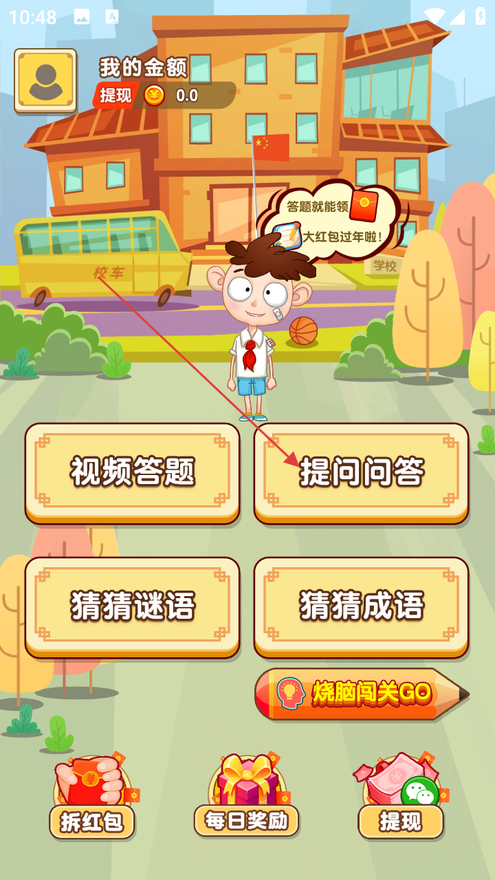 1、在主界面选择答题模式(视频答题、提问问答等),进入对应场景。