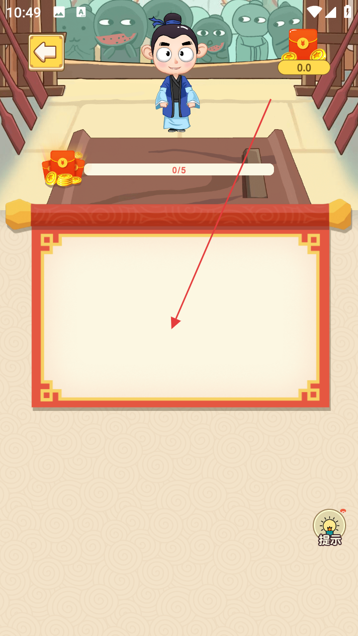 3、完成答题进度(如0/5),可领取红包、奖励,积累金额后提现,继续挑战新关卡。
