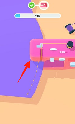 3、界面元素有材料(卷尺)、工具(剪刀、缝纫机),显示进度(11%),通过完成设计任务,积累资源,解锁新面料、款式,升级设计技能。