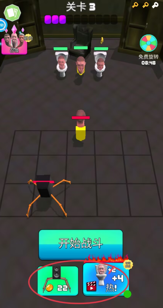 3、特色敌人阵容丰富,包含马桶人、音响人等20+种怪异对手。每种敌人都有独特行为模式和弱点,需要针对性培养克制兵种。