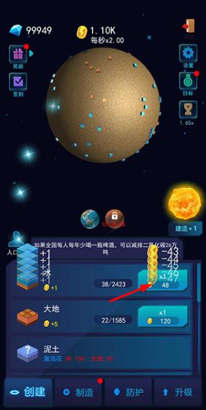 2、游戏中途,通过完成目标任务解锁新元素,如培育原始生物、创造山脉河流,逐步丰富星球生态。