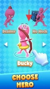 1、点击“CHOOSEHERO”,从不同火柴人英雄(如Ducky)中选择,获取独特技能和属性。