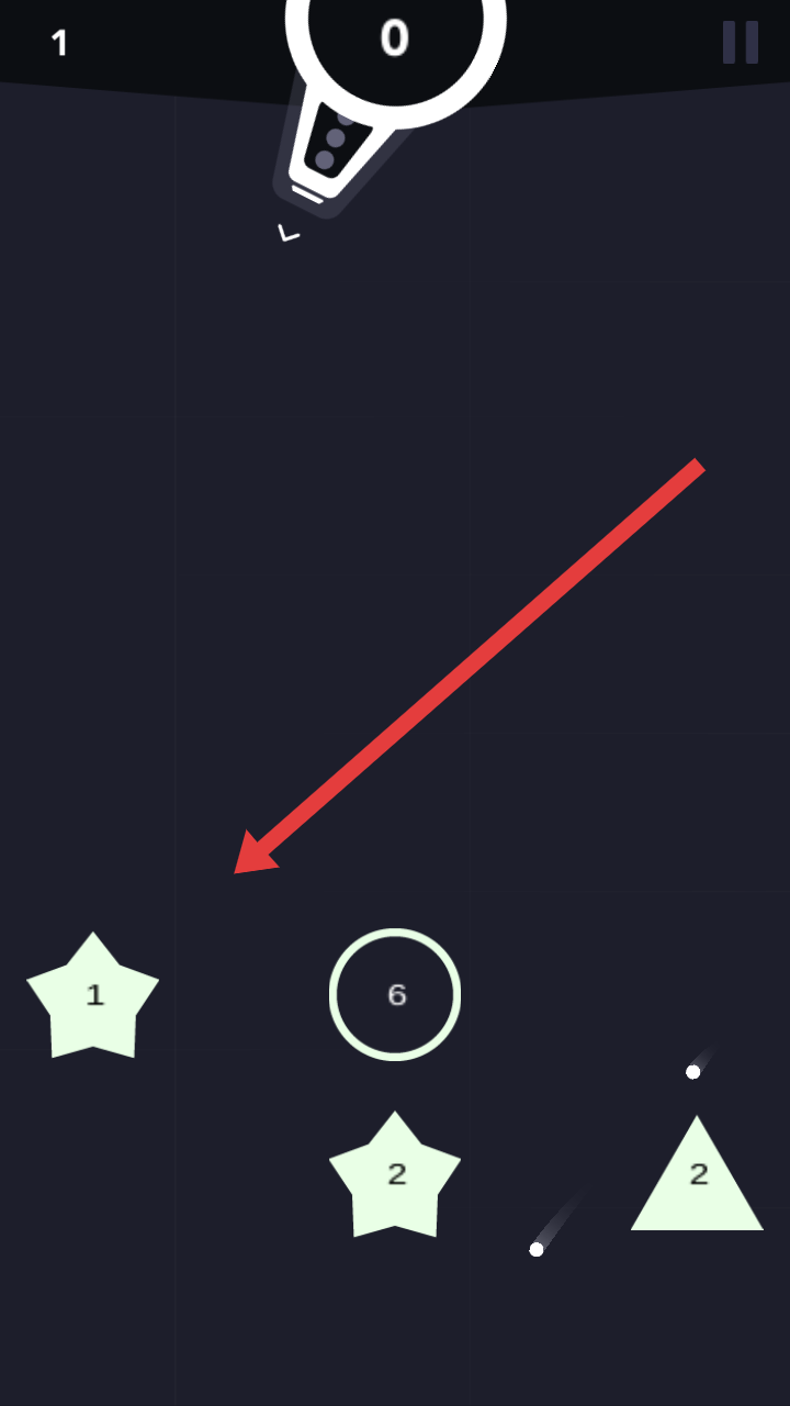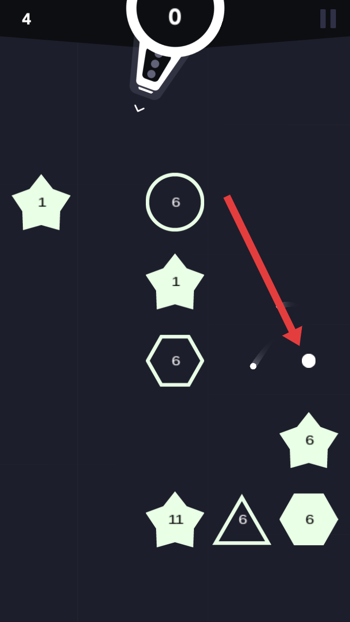 3、游戏中操控白球弹射,瞄准带数字的星形、圆形等图形碰撞,积累分数,注意上方计数装置的变化。