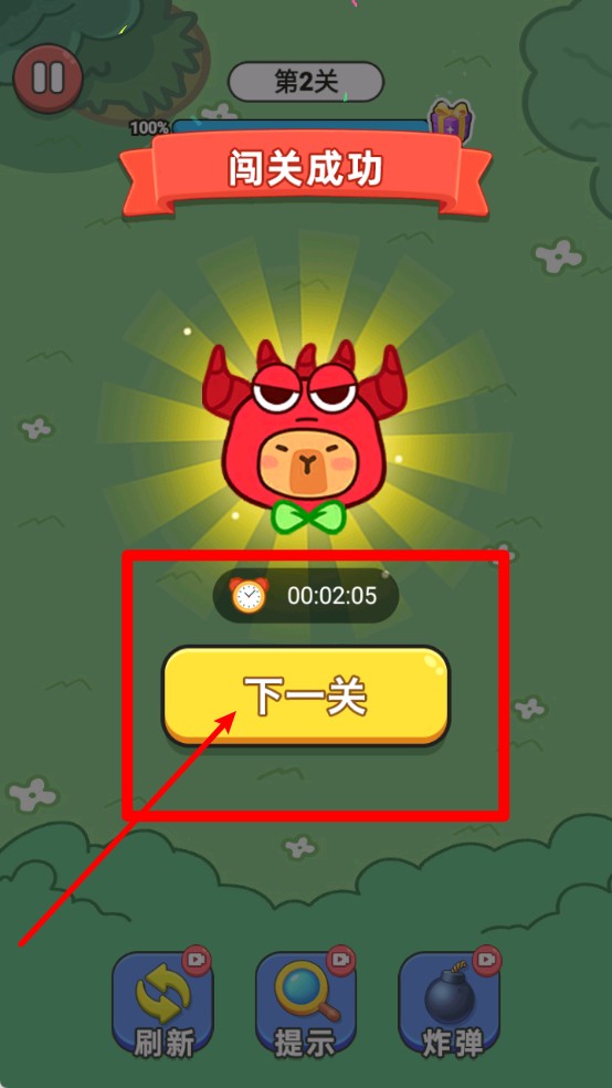 3.通关后点击“下一关”按钮即可进入新挑战,系统会记录完成时间并自动保存当前进度数据。