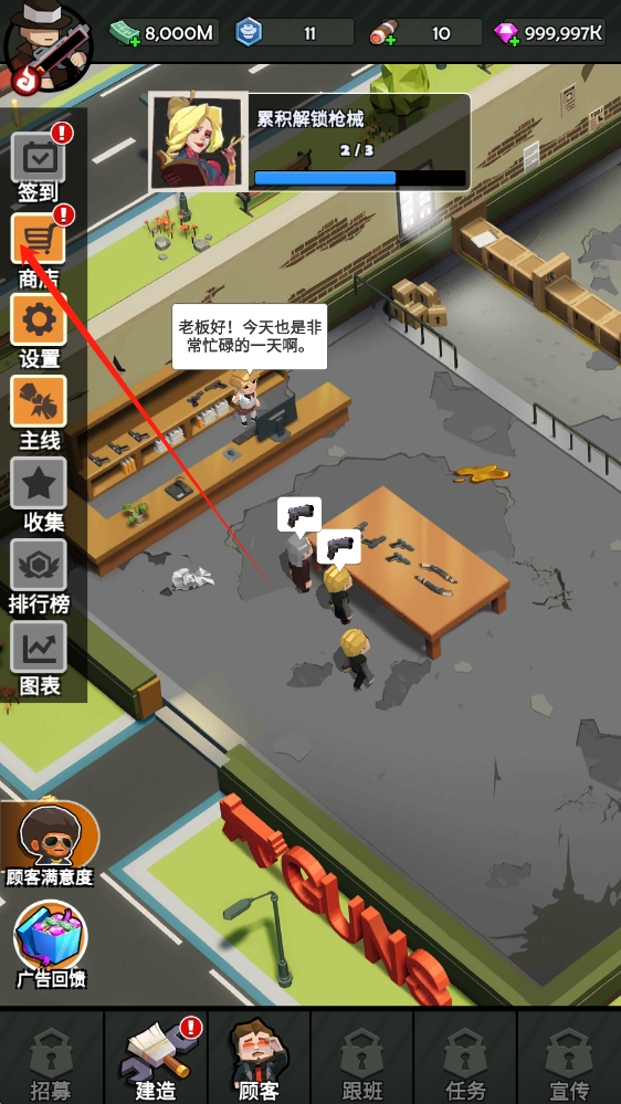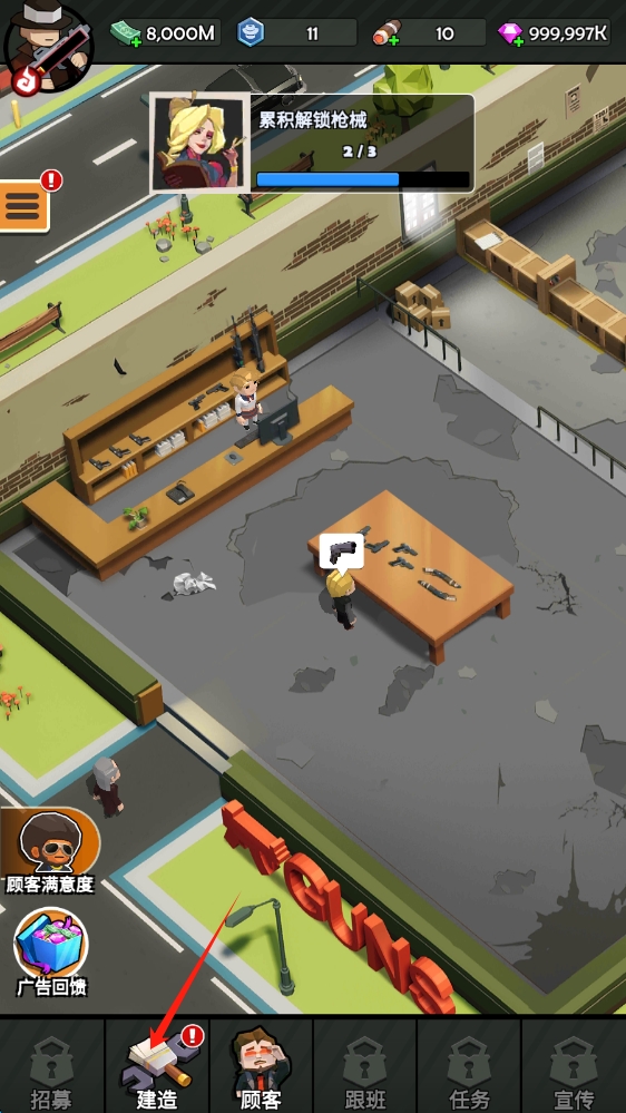 2、点击建造,可能用于解锁特殊场景,利用每日登录奖励获取免费武器升级与加速解锁。