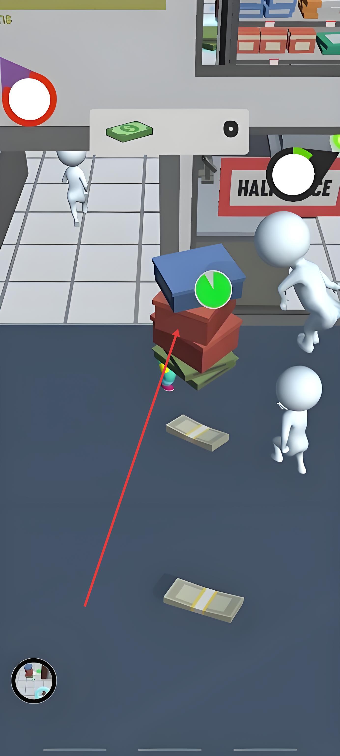 2、在货架间穿梭时观察监控探头旋转规律,趁镜头转向瞬间快速通过,遇到触发警报的商品需使用“干扰器”道具暂时屏蔽感应,避免引来保安。