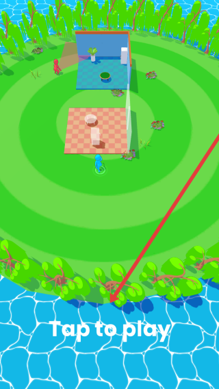 1、点击初始界面“Tap-to-play”,进入游戏,操控蓝色角色,开启岛屿冒险,探索场景建筑与环境。