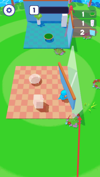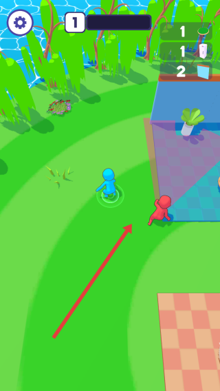 2、在场景中,跟随箭头指引,让蓝色角色靠近红色角色,触发互动,推进“1”号关卡任务,解锁新区域。