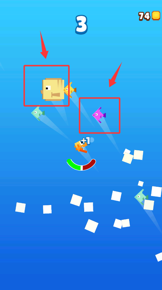 3、需要移动吃小鱼,注意避开大鱼。