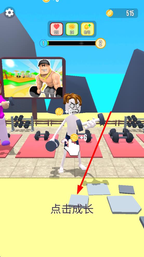 3、在战斗过程中,留意屏幕提示,如“点击成长”,按提示操作获取资源,提升角色能力,顺利通过关卡。