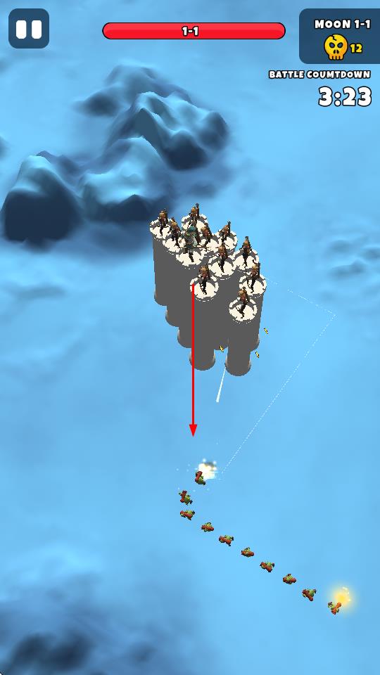 3、“防御战斗”,在关卡(1-1)中,士兵自动攻击来袭敌人,坚守塔楼,完成波次防御。