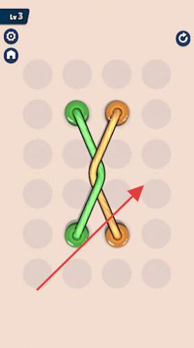 2、在【Lv.3】关卡,面对交叉的绿、橙绳索,先确定固定端点,尝试移动其中一根绳索端点,避开交叉,完成解绳。