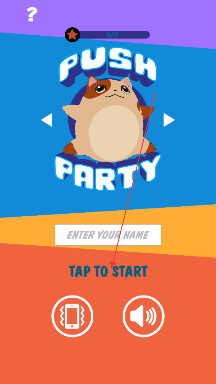 1、进入游戏界面,点击“TAPTOSTART”按钮,可输入名字,开启趣味竞技之旅。
