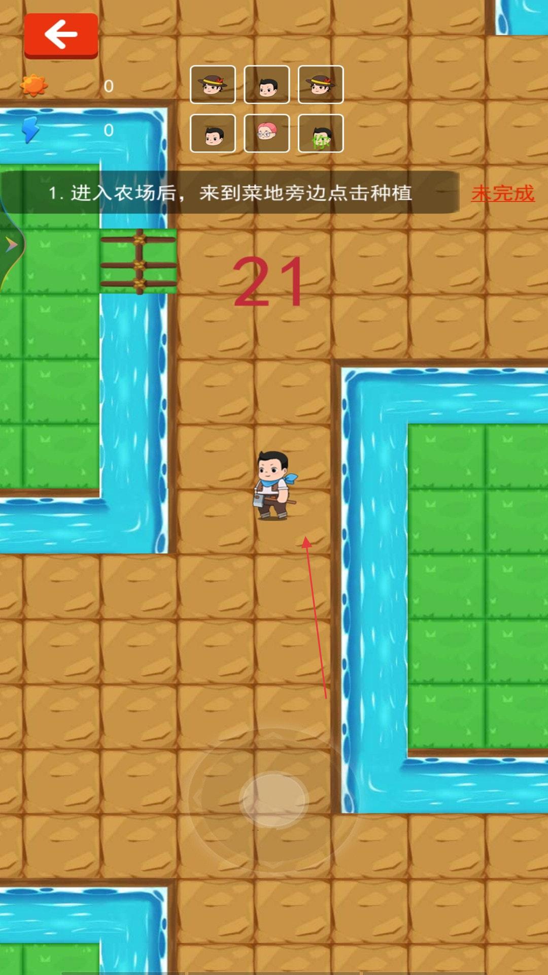 3、“农场种植”,进入农场场景,按提示(菜地旁点击种植),完成种植任务,获取资源。