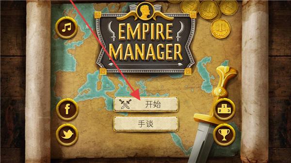1、启动界面,显示“EMPIREMANAGER”,有“开始”“手谈”按钮,可开启游戏。