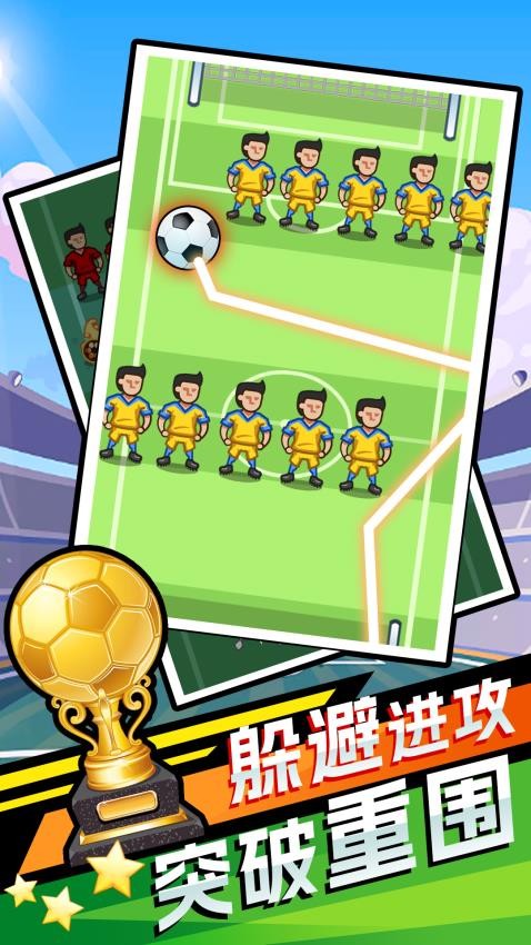 1、创新足球闯关玩法,将传统足球比赛转化为趣味关卡挑战,玩家需要操控球员在特殊设计的球场中突破各种障碍。