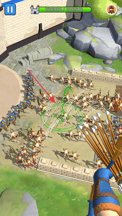 2、操控角色精准射箭:操控角色进行射箭攻击,根据敌人类型选择合适的箭(如穿透箭、爆炸箭等),瞄准敌人弱点发起攻击,在塔防辅助下快速消灭敌人,提升防御效率。