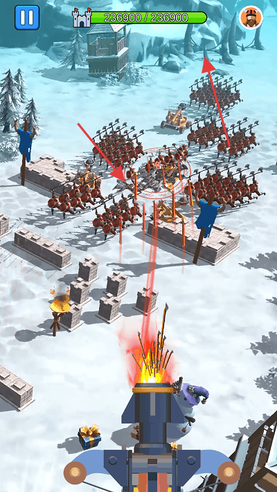 2、“军团调度”,在战场(雪地、城池)指挥己方军团(不同阵营士兵),调整阵型、推进路线。