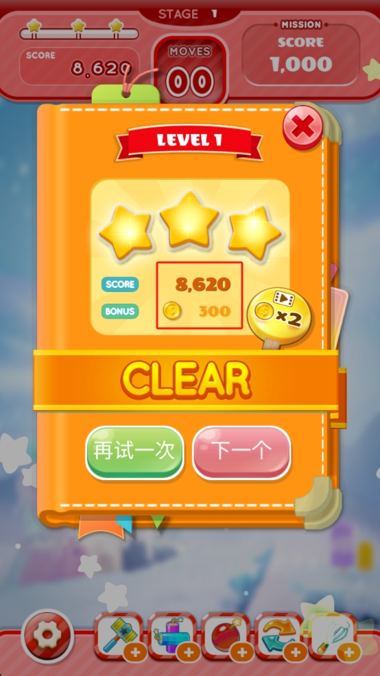 2、策略应对挑战:根据关卡中的独特挑战制定消除策略,优先处理障碍或把握限时机会,结合道具的使用,高效完成任务,提升闯关成功率。
