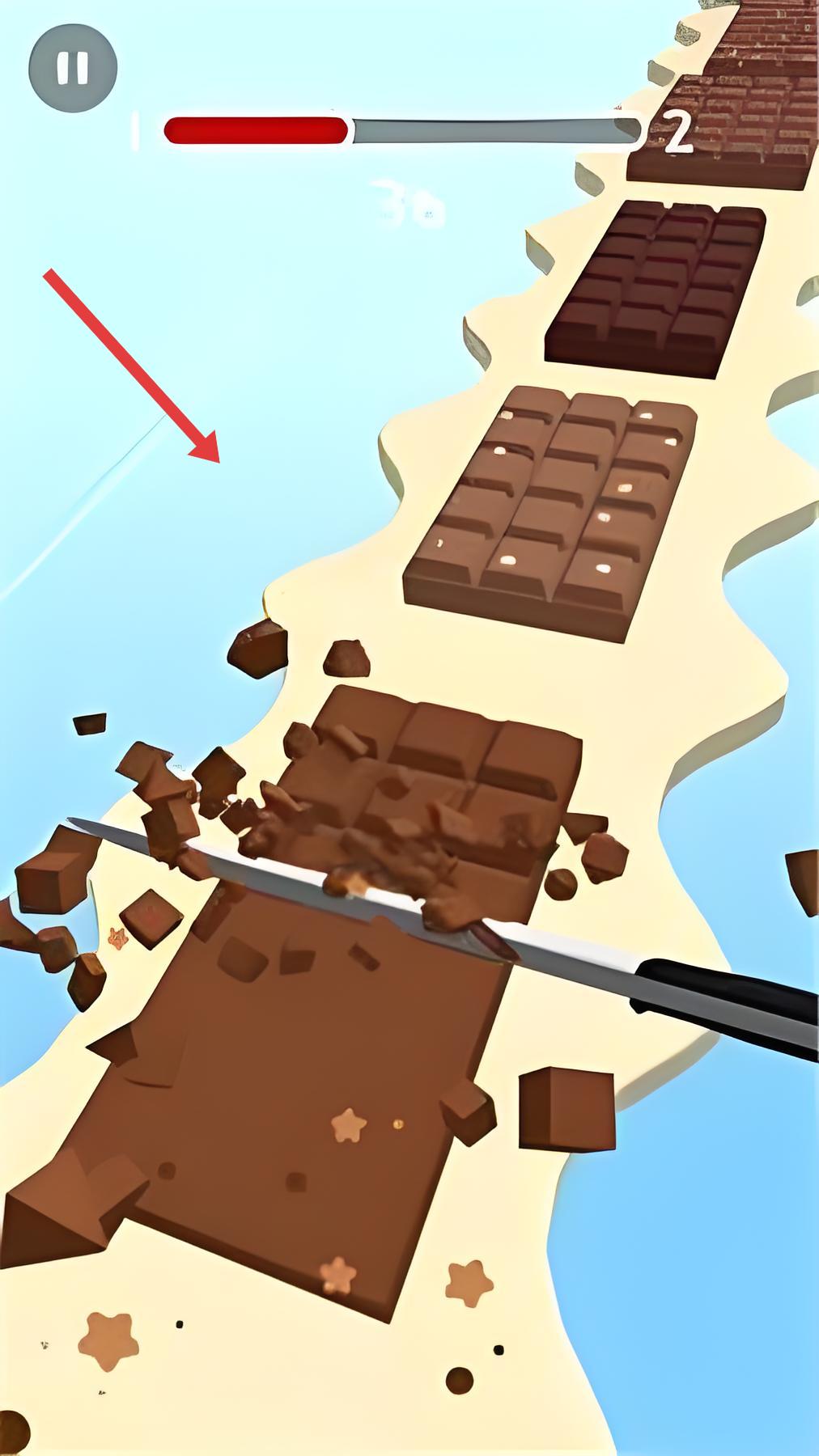 3、解锁内容进阶:完成关卡解锁更多种类的糖果巧克力和全新刀具,随着解锁内容增多,切割难度与乐趣同步提升,从基础切割到复杂挑战,逐步深入体验丰富内容。