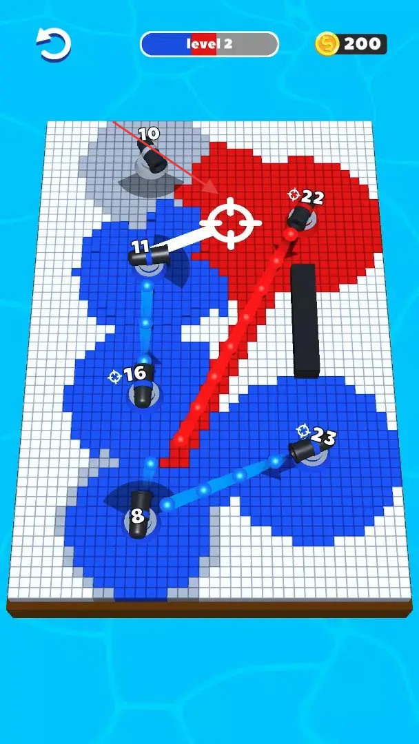 2、直观操作轻松上手:玩法直观易懂,玩家只需操控炮台射击即可占领地盘,无需复杂操作,新手能快速掌握技巧,专注于策略规划,在轻松操作中体验征服的成就感。