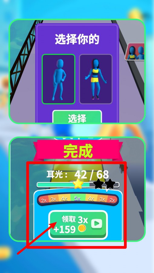 3.完成关卡后可选择三倍奖励,只需观看广告影片即可获得大量金币,助力角色升级或解锁新角色。