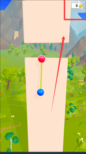 1、玩家需要操控被皮筋连接的两个小球,通过精准的弹射力度和角度控制,帮助它们跨越障碍并抵达终点宝箱。