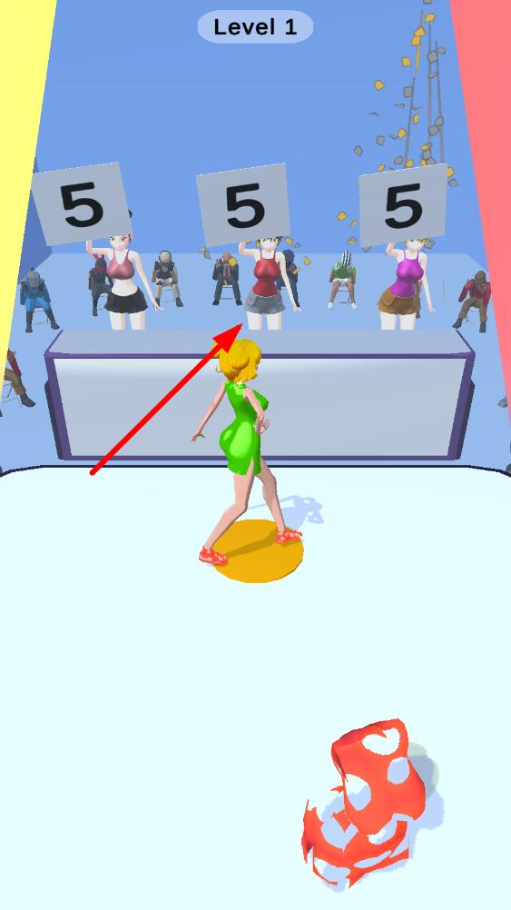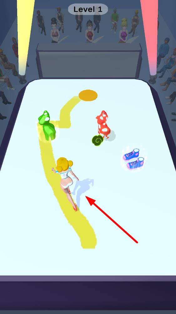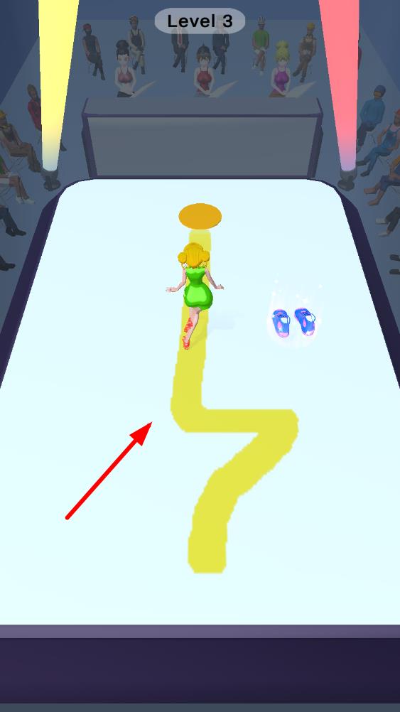 2、关卡中,通过敏捷操作控制角色转向、躲避障碍,同时应对对手的干扰,保持走秀节奏,收集道具提升表现。