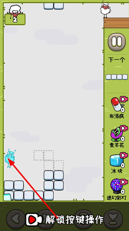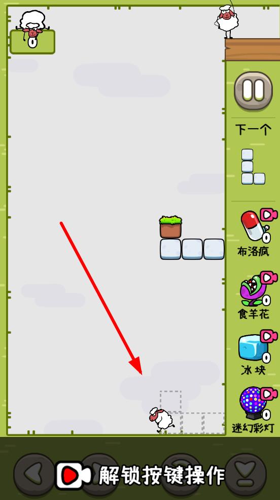 2、针对羊的策略:关注羊出现的位置,调整方块落点精准压扁;多只羊同列时,堆高方块一次性消除该行,高效得分。