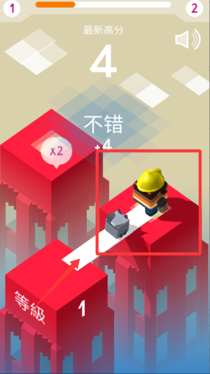 2、持续搭木板前进以获得更高分数,每成功搭建一块木板都会增加你的成绩。
