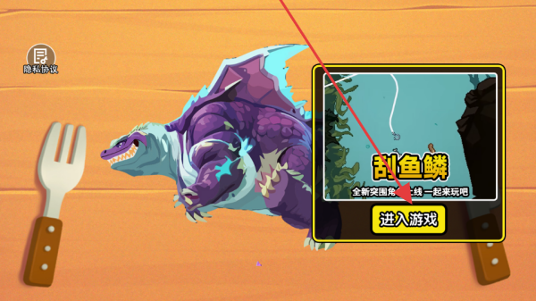 2、看到“刮鱼鳞”玩法界面,点击【进入游戏】,尝试全新突围角玩法,感受不一样的钓鱼游戏乐趣。