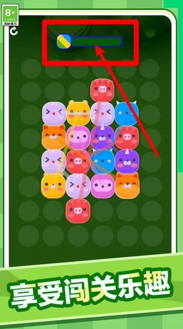1.画面上方显示当前关卡的进度条,完成每个配对动作都会提升进度,达标后即可进入下一关卡。