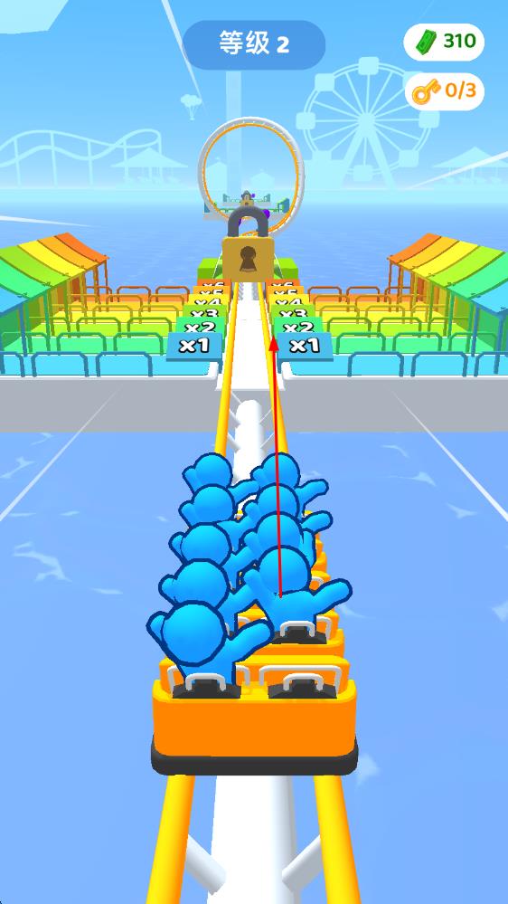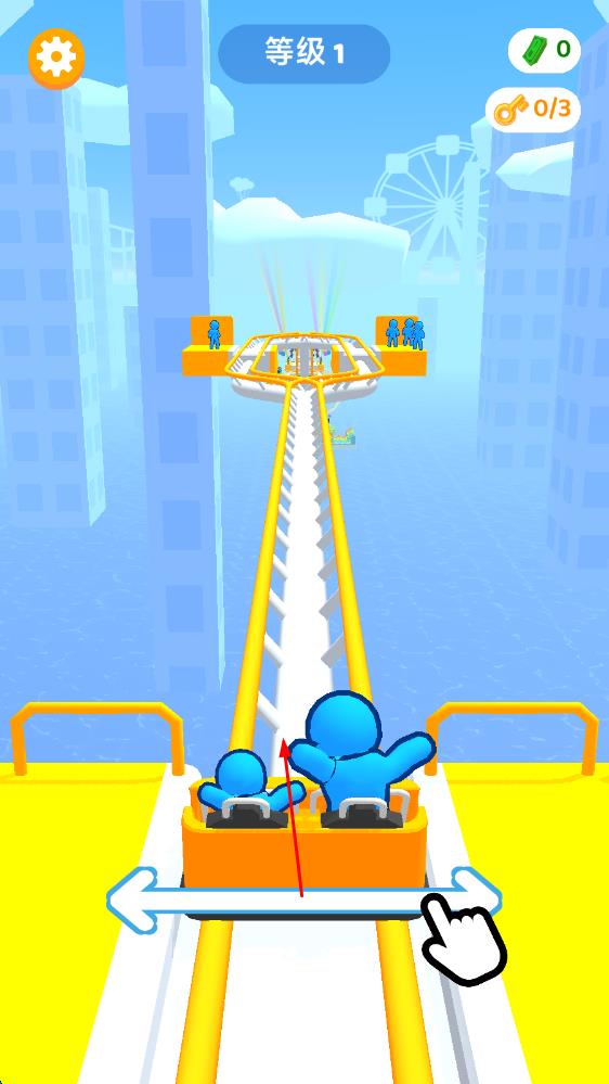 3、成功将乘客安全送达每个景点尽头,完成关卡挑战,解锁新轨道与定制元素,用奖励升级过山车性能,向更高难度关卡发起冲击。