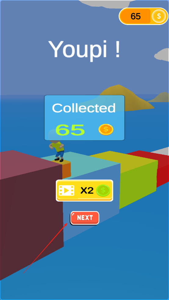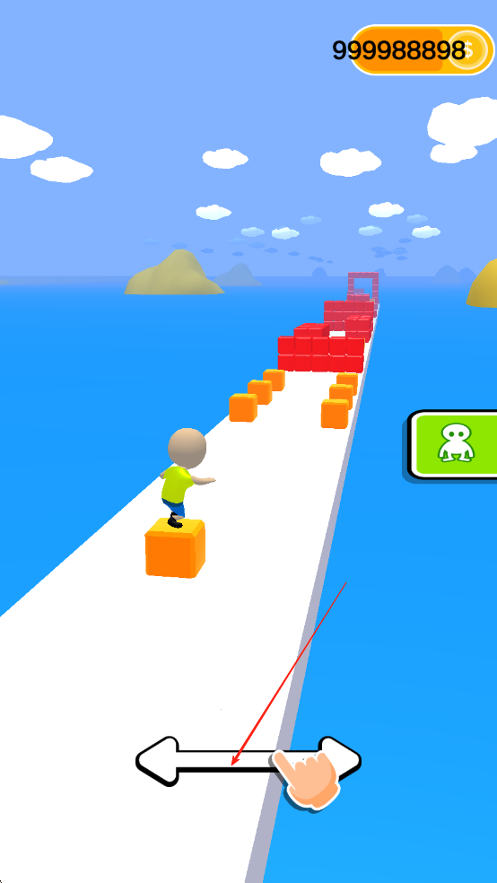 1、进入游戏后,在初始赛道上,点击屏幕控制橡皮人跳跃,避开简单障碍的同时收集沿途方块,熟悉跳跃节奏,向终点前进。