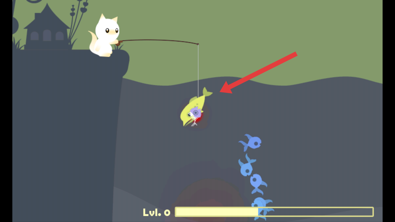 3、当钓起黄色大鱼时,及时点击收取,利用其提升角色等级,解锁更难钓取的目标,推进游戏进程。