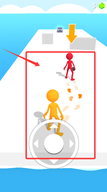2、在关卡场景内,通过下虚拟摇杆控制角色移动,击杀红色目标敌人。