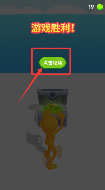 3、成功到达宝箱目标后,触发胜利结算,点击继续即可开启后续关卡挑战。