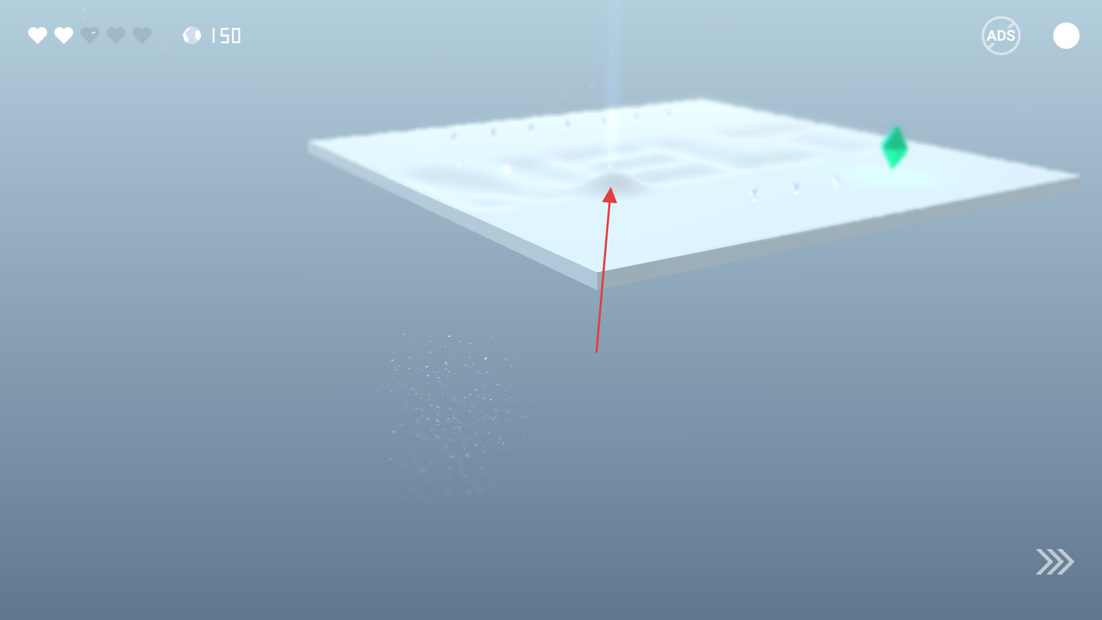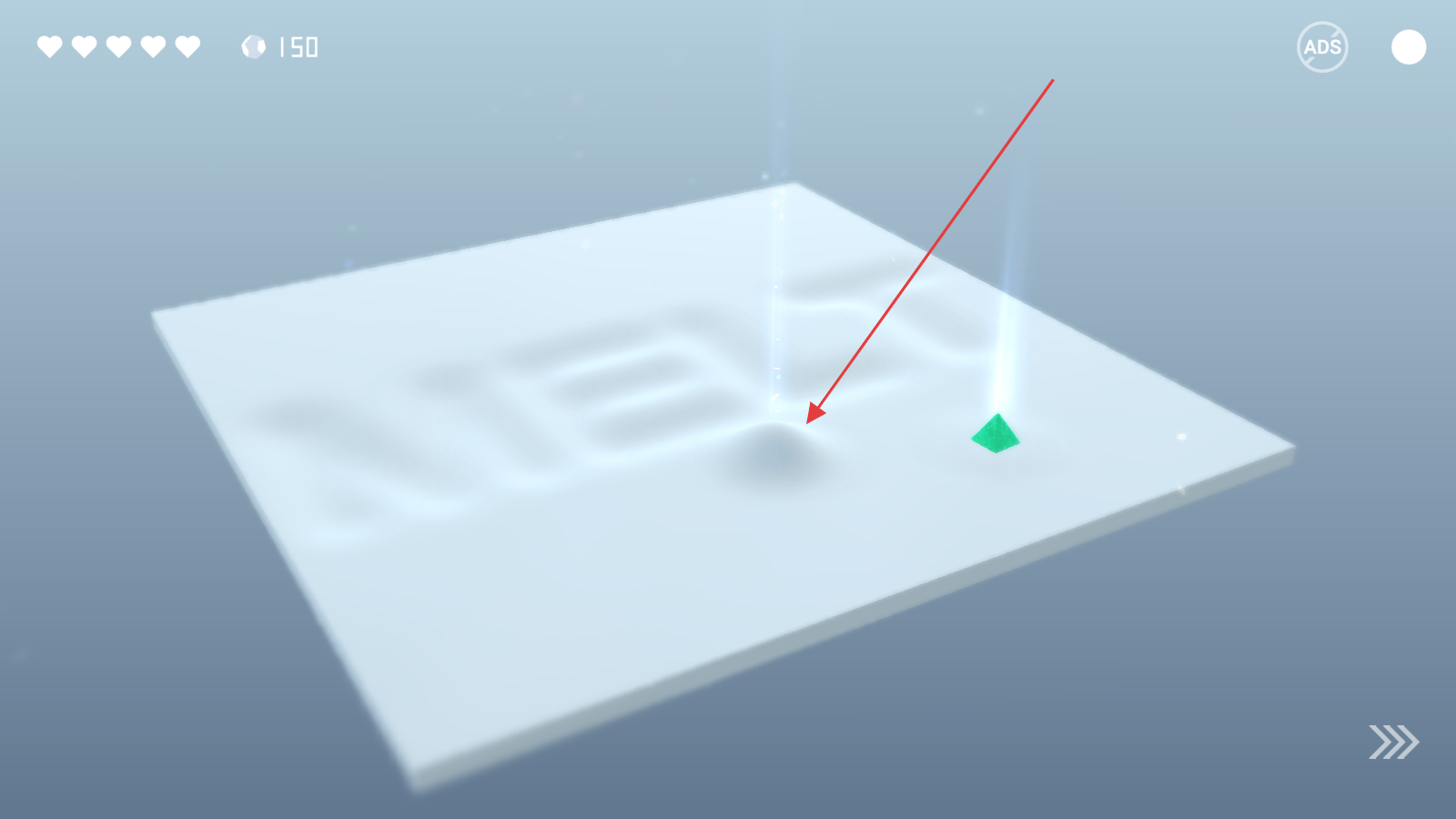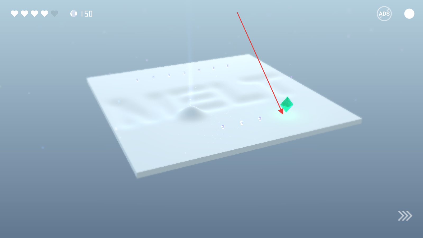3、关注爱心血量,探索有“MEW”字样的地形,用ADS按钮关广告,专心解谜,成功走出迷宫就过关。