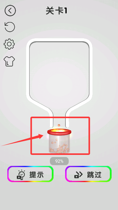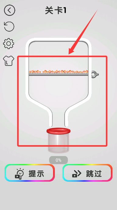 3、小球落入下方红色盖子容器中,待填充进度达100%,即可完成本关目标。