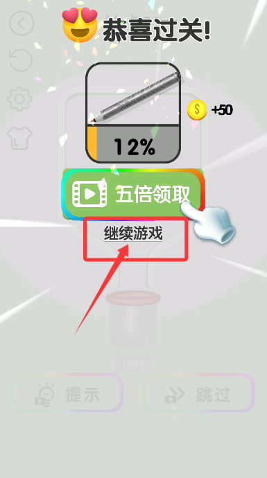 4、成功通关后,点击“继续游戏”进入下一关,挑战新拉针解谜任务。