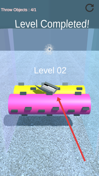 3、成功粉碎物品后,Level01完成,进入“Level-Completed!”结算,点击进入Level02,继续粉碎新物品(如键盘)。