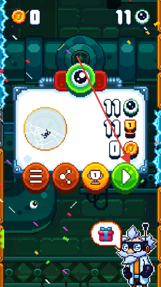 3、完成关卡任务后,点击右下角的绿色播放按钮(箭头所指 )进入下一关,或点击其他按钮查看菜单、分享、查看成就等,持续推进游戏进程。