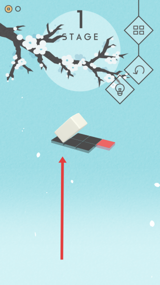 3、在Stage1场景,通过滑动或点击,推动豆腐块到目标位置(红色区域),利用场景元素,完成第一关解谜。