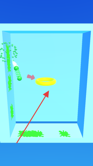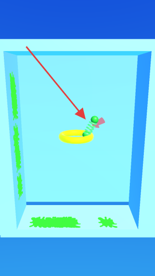 2、释放弹簧,让绿色小球弹射,穿过黄色圆环,注意避开绿色黏液障碍,调整弹射方向。