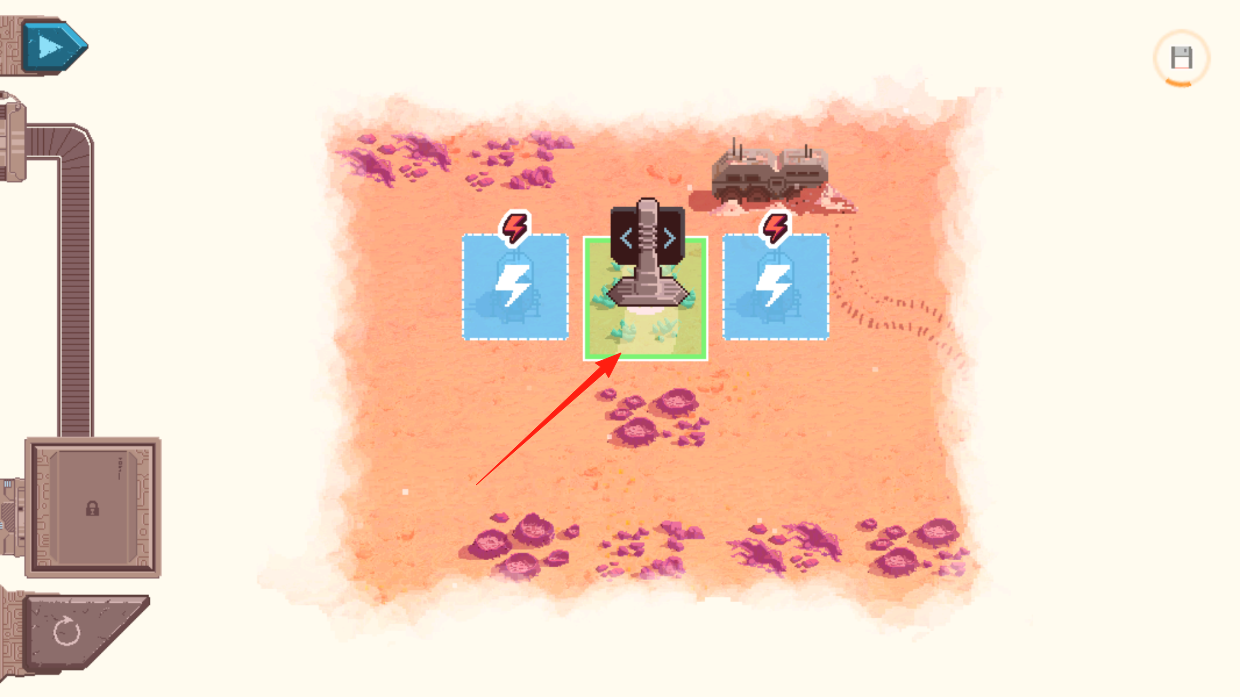 3、在设施旁,选择绿色区域放置建筑(如基地模块),借建造机制,拓展外星基地,激活周边蓝色闪电设施,体验策略性布局与功能联动的玩法。