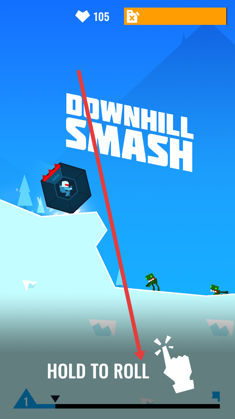 1、这是《Downhill Smash》(下坡粉碎)游戏截图,含初始界面与关卡场景,观察游戏页面。