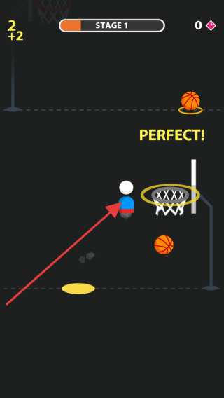 2、在【STAGE1】,操控角色投篮,命中篮筐触发【PERFECT!】,积累得分。