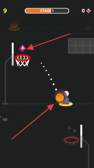 3、投篮时,尝试命中带钻石篮筐,收集钻石,同时完成投篮,提升闯关效率。