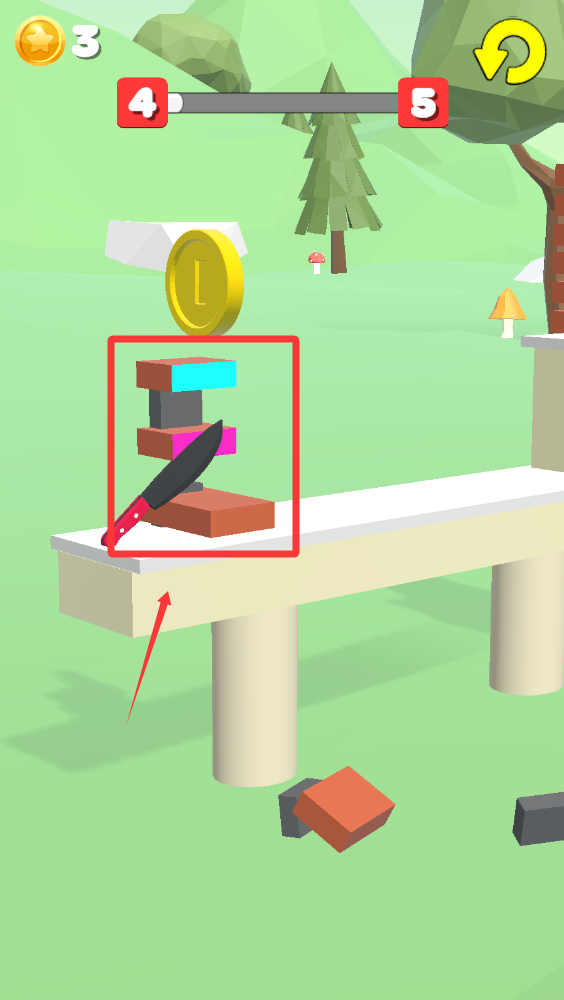 2、点击一下刀子就会翻转切下来砖头就能获取一个金币。