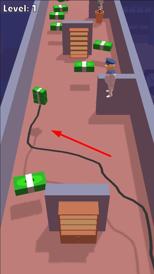 1、进入独特画风的场景,熟悉手臂操控方式(滑动屏幕调整长度、弯曲程度),观察巡逻人员的路线和视野范围,明确目标物品的位置,做好偷取准备,开启你的盗贼闯关之旅。